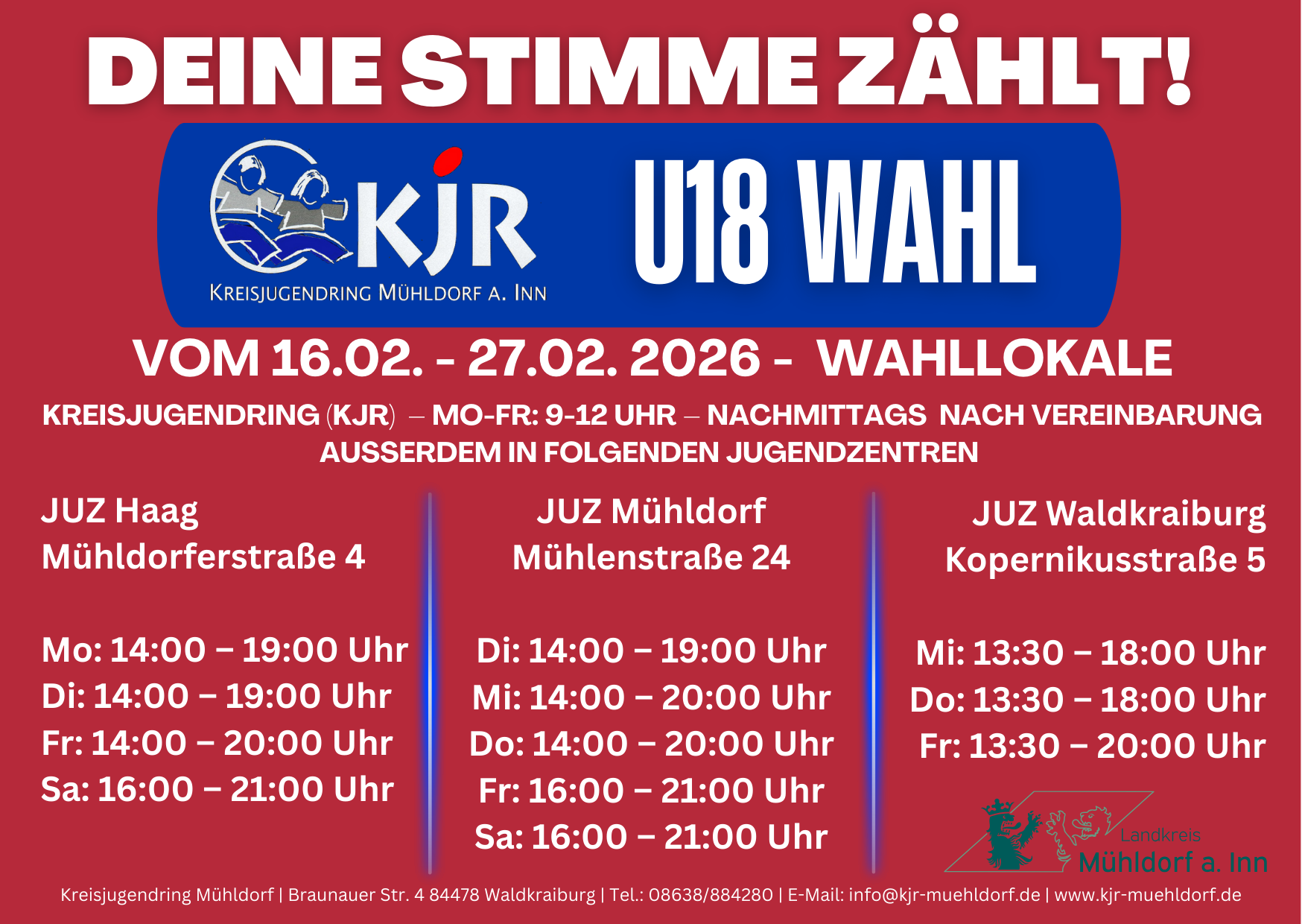 | Kreisjugendring JUZ Haag, JUZ Mühldorf, JUZ Waldkraiburg | Interessierte | von 0 bis 17 Jahren | Hier |