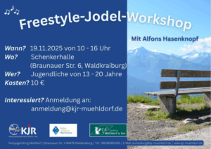 Du hast am Buß- und Bettag noch nichts vor und hast Lust auf Spaß, Musik und eine coole Gruppe? Dann ist unser Freestyle-Jodel-Workshop genau das Richtige für dich!