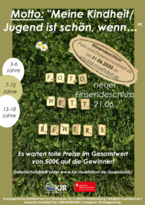 Der Kreisjugendring Mühldorf am Inn veranstaltet einen Fotowettbewerb für Kinder und Jugendliche aus dem Landkreis Mühldorf und Umgebung im Alter von 3 – 18 Jahren. Mit dem Motto „Meine Kindheit/Jugend ist schön, wenn“ zielt der Wettbewerb auf die Besinnung zu den schönen Dingen des Lebens, auch in Zeiten von Corona.