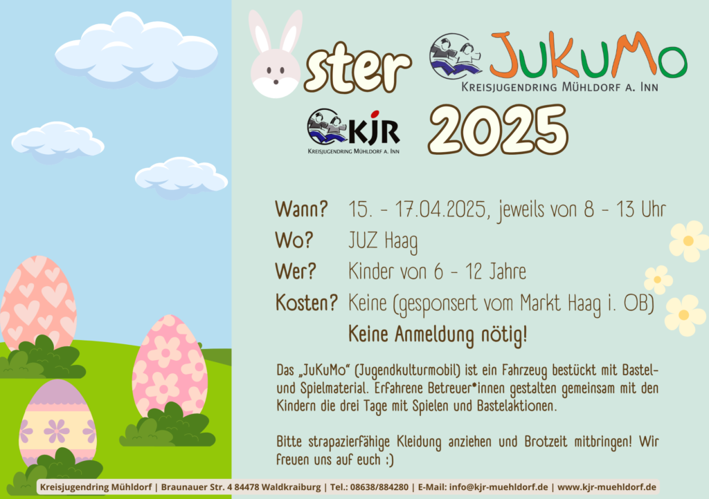 Komm zum Oster JuKuMo und verbringe eine unvergessliche Zeit mit vielen Spiel- und Bastelmöglichkeiten.